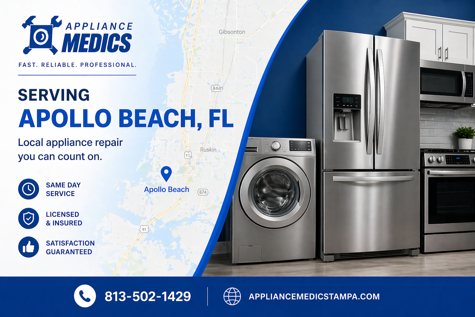 Don’t let a broken appliance disrupt your family’s routine. Book online or call now — we serve all of Apollo Beach, Hillsborough County, and the greater Tampa Bay area.